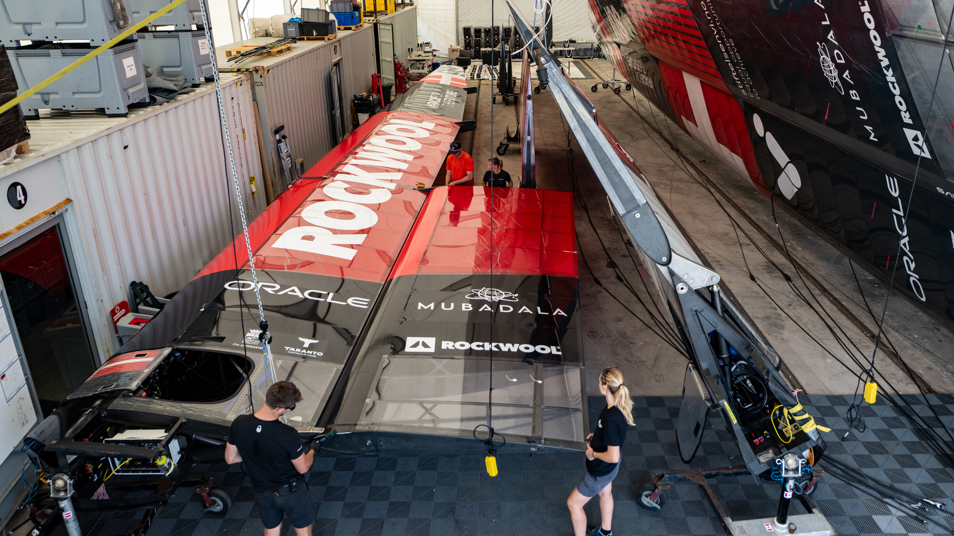 That does away with the complex rope and pulley network used on the America’s Cup AC50 catamarans – the precursors to SailGP’s F50s – and means the process of separating two sections is as simple as unbolting them and unplugging the electronics and hydraulic lines.