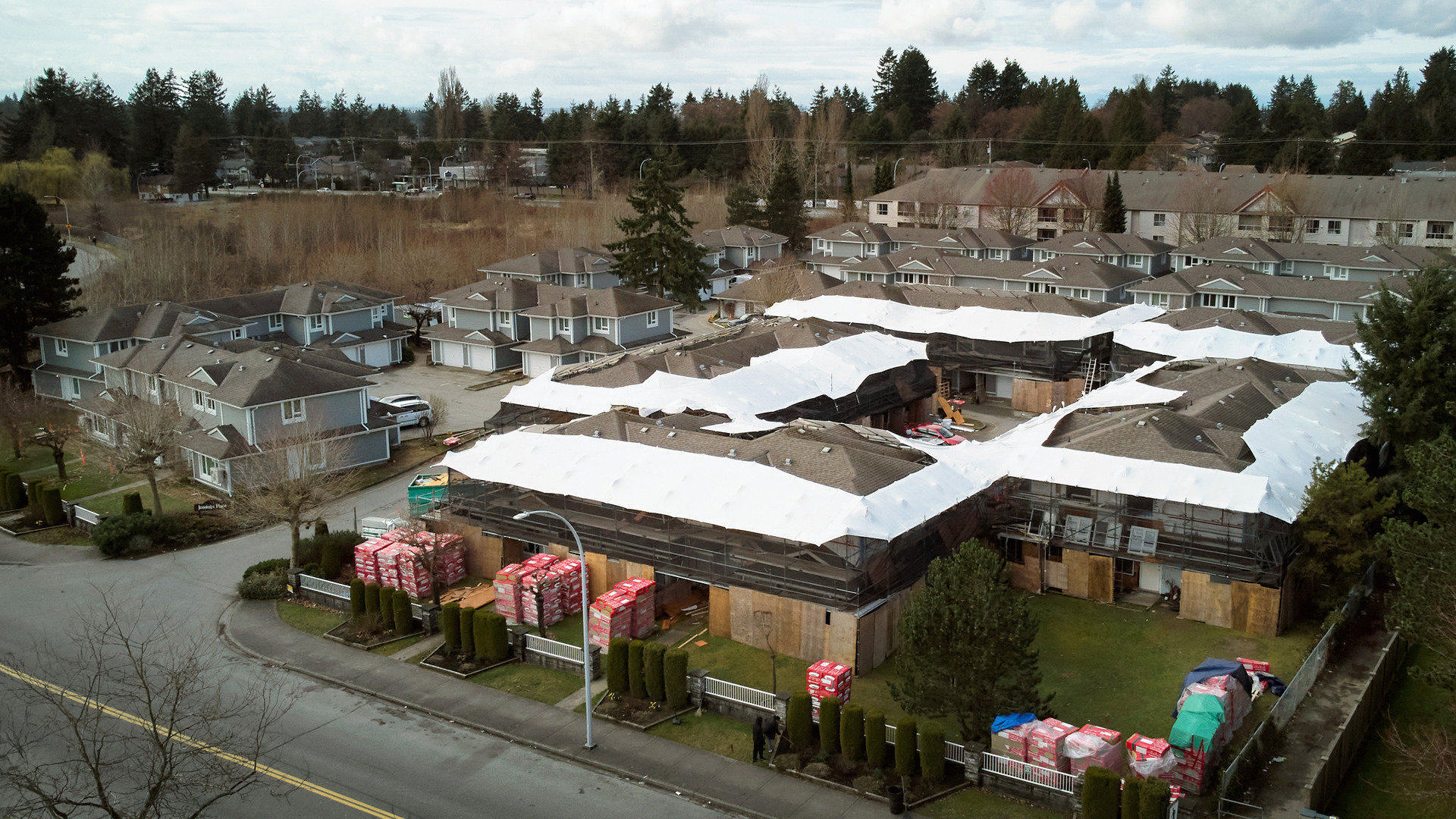 Jennings Place is a townhouse complex located in Surrey, British Columbia, consisting of 15, two-story townhouse buildings (totaling 52 units) and a recreation building. Built in 1989 to meet the standard of the day, and now showing its age, the owners of the complex sought to update some aspects of the building, as a number of its components had reached or were nearing the end of their serviceable life. The retrofit work also provided the ideal opportunity to address the building’s energy performance.